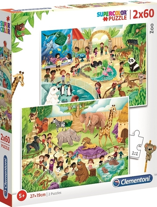 Clementoni Supercolor πάζλ 2×60 Ζωολογικός Κήπος 2 πάζλ των 60 τμχ Διαστάσεις κάθε πάζλ: 27×19 εκ