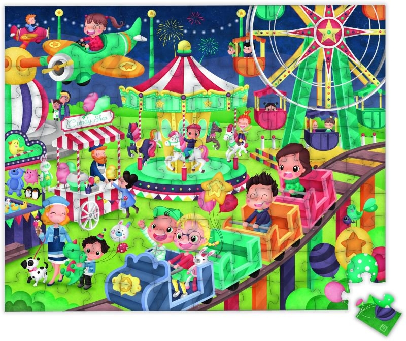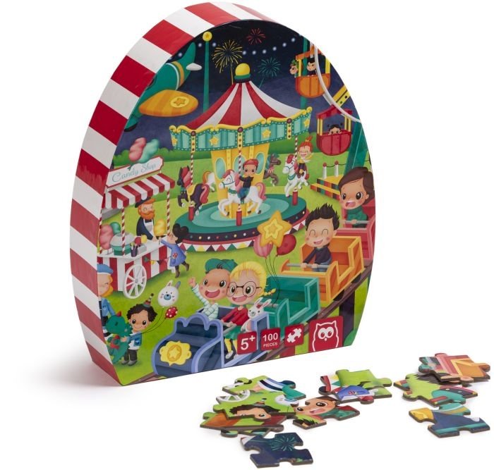 Το λούνα παρκ αποτελεί ένα θαυμαστό και συναρπαστικό κόσμο για όλα τα παιδιά! Αυτό το παζλ αναπαριστά ένα πολύχρωμο σκηνικό γεμάτο με χαρακτηριστικά στοιχεία της πάρκων αναψυχής. Καθώς τα παιδιά τοποθετούν τα κομμάτια μεταξύ τους, θα ανακαλύψουν εκπληκτικά πράγματα όπως το καρουζέλ, το τρενάκι, ο πάγκος με τα ζαχαρωτά… Ένα διασκεδαστικό παζλ 100 κομματιών.