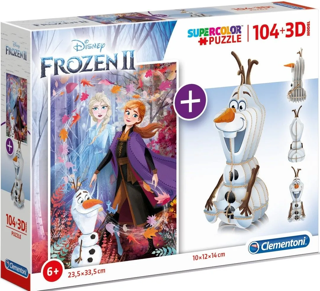 Παζλ 104 3D Clementoni Frozen 2 Διαστάσεις παζλ: 23,5 x 33,5 εκ. Διαστάσεις 3D: 8 x 20 x 9 εκ. Κομμάτια: 104