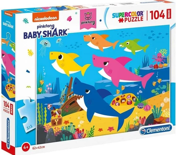 Παζλ 104 Maxi Super Color Clementoni Baby Shark Διαστάσεις παζλ: 62 x 42 εκ. Κομμάτια: 104