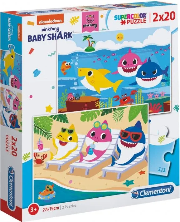 Παζλ 2×20 Clementoni Baby Shark Διαστάσεις παζλ: 27 x 19 εκ. Κομμάτια: 2 παζλ με 20 κομμάτια το καθένα.