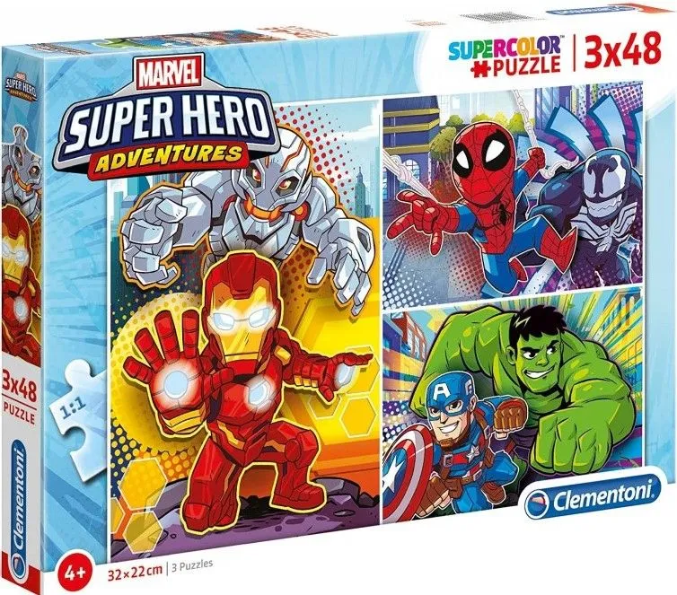 Παζλ 3×48 Super Color Clementoni Marvel- Superhero Διαστάσεις παζλ: 32 x 22 εκ. Κομμάτια: 3 παζλ με 48 κομμάτια το καθένα