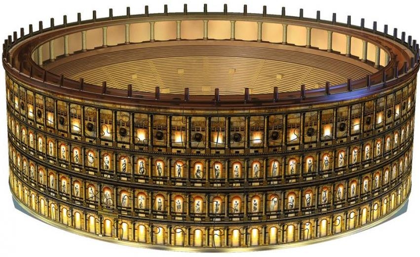 Κατασκευάστε ένα εξαιρετικό, καταφώτιστο αντίγραφο του αρχαίου Κολοσσαίου από πλαστικά καμπύλα κομμάτια και φωταγωγείστε το από μέσα με φως led. Η μοναδική τεχνολογία Easyclick εγγυάται μία σταθερή κατασκευή χωρίς την χρήση κόλλας.