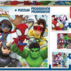 Παζλ 4 Educa Spidey Κάθε κουτί περιέχει 4 παζλ με διαφορετικό αριθμό κομματιών το καθένα (μεταξύ 12 και 25) για να δοκιμάσουν τα παιδιά όλο και πιο δύσκολα παζλ καθώς μεγαλώνουν και να μαθαίνουν να συνθέτουν παζλ. Μέγεθος κάθε συναρμολογημένου παζλ: 16 x 16 cm.