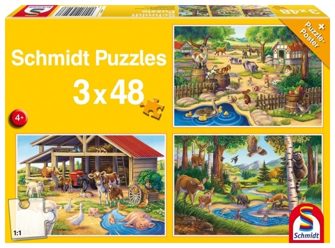 Puzzle Schmidt Αγαπημένα μου ζωάκια Παζλ για παιδιά με όμορφη εικονογράφηση. •3 παζλ x 48 κομμάτια •Διαστάσεις Puzzle: 26 εκ. x 18 εκ.