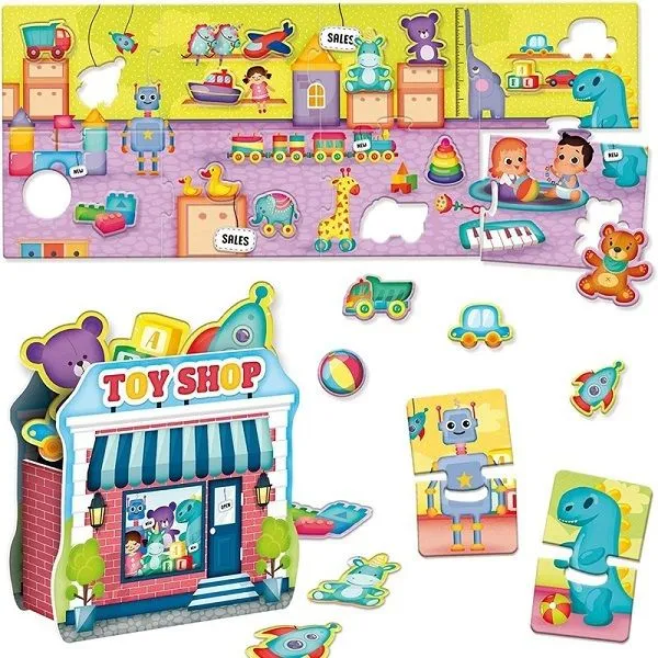 Ένα μεγάλο και πολύχρωμο κατάστημα 3D παιχνιδιών από το οποίο μπορείτε να “ψωνίσετε” παιχνίδια για να χωρέσετε στο παζλ!